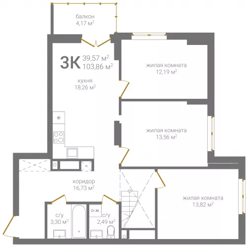 3-комнатная квартира № 143