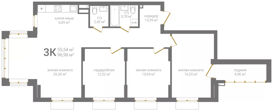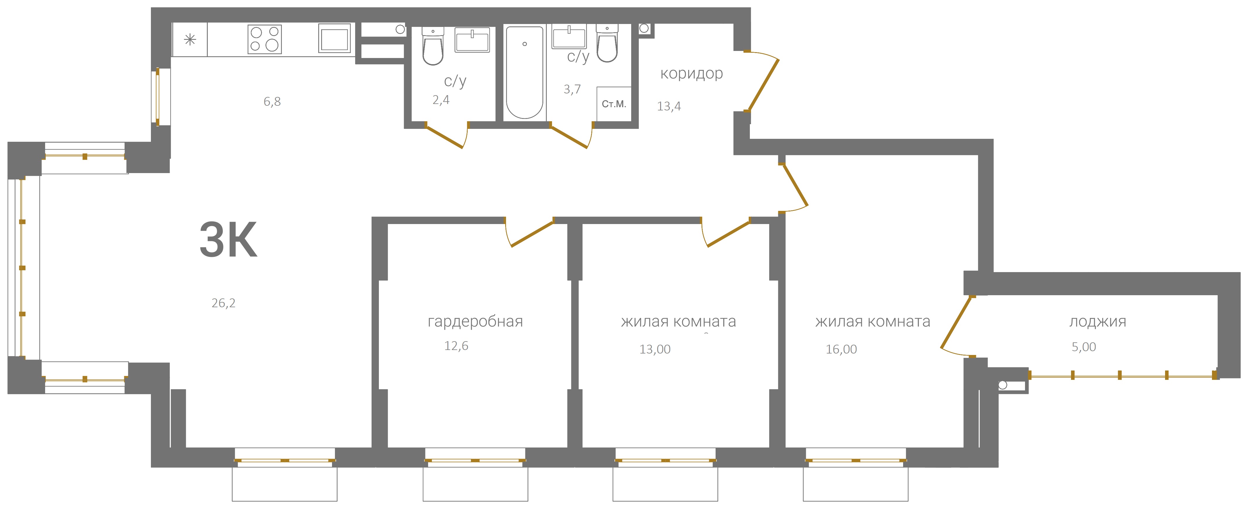 3-комнатная квартира № 1